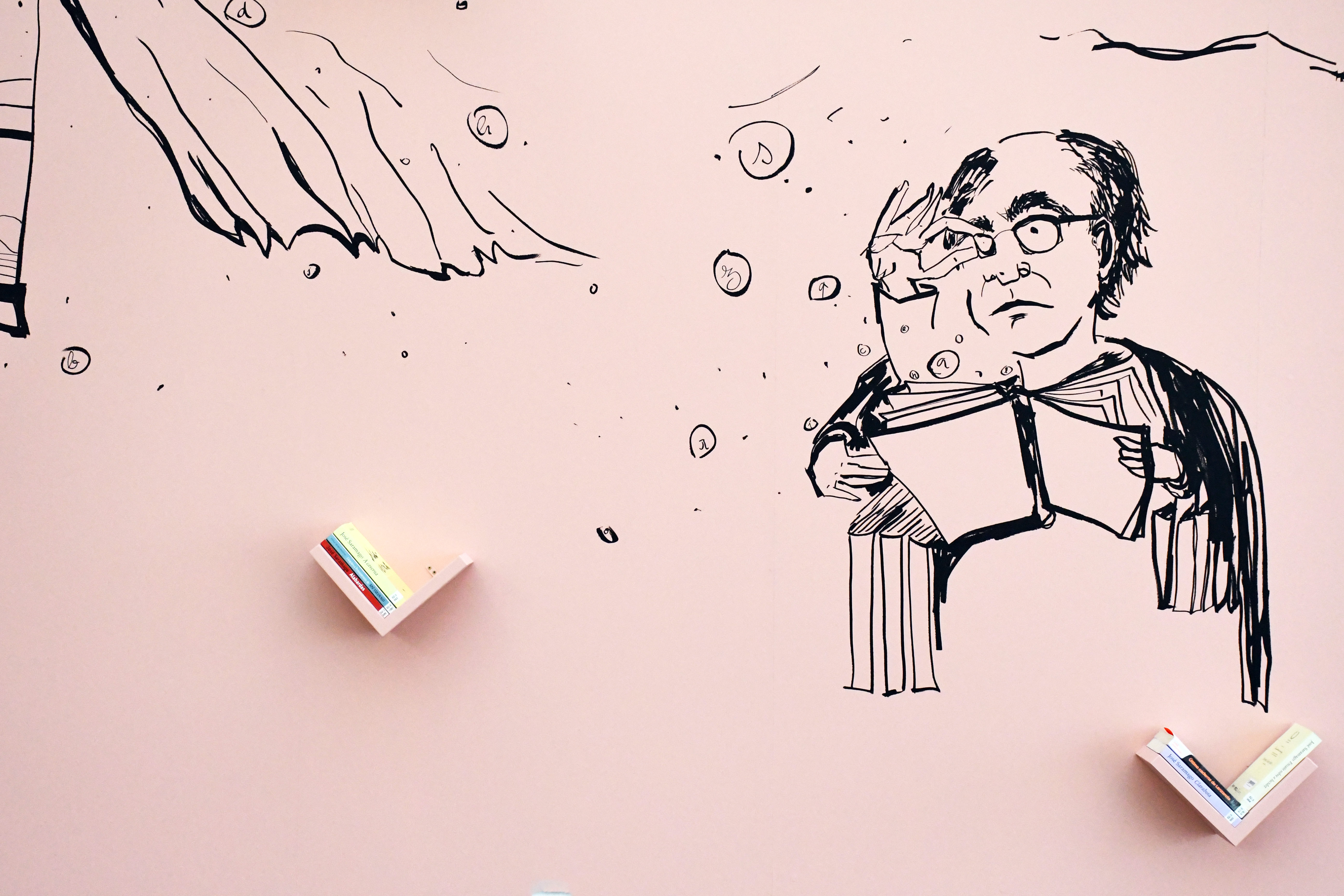 A esta exposição itinerante junta-se, na Biblioteca José Saramago do Politécnico de Leiria, a intenção de seduzir os utilizadores da biblioteca para a obra do autor. Assim, aos painéis expositivos junta-se agora todo o ambiente que inclui campo de cor, desenho inscrito em cada porção cromática, citações manuscritas, e o principal, as próprias obras de José Saramago, oferecidas pelo dispositivo expositivo a todos aqueles que param, querem pensar e que querem sobretudo dar uma outra oportunidade à leitura!