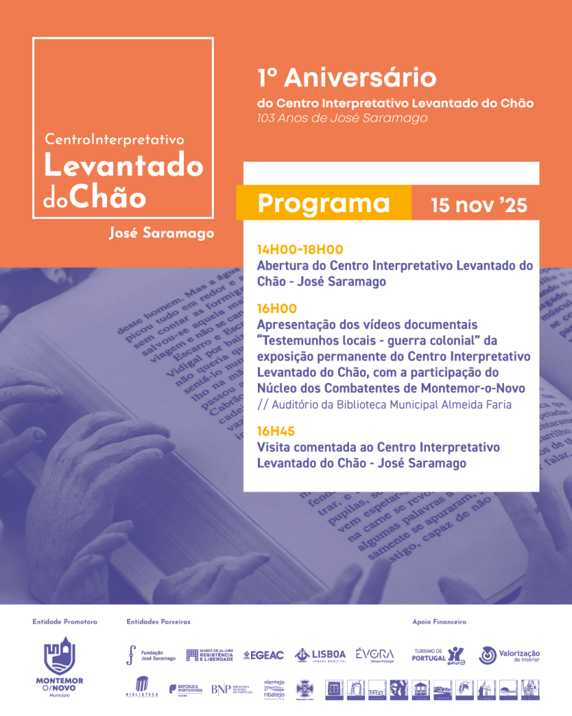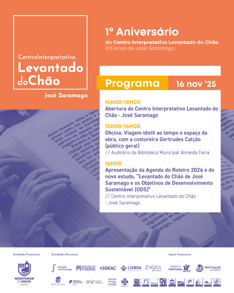 Neste dia celebramos também o 1º aniversário do Centro Interpretativo Levantado do Chão, inaugurado a 16 de novembro de 2024. Venha comemorar connosco, o livro, o escritor e o homem José Saramago.